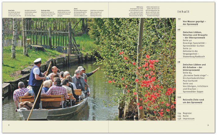 Neben der urwüchsigen Natur locken aber auch Schlösser und Kirchen, Heimatmuseen und Ausflugslokale in die Auenlandschaft, die sich am besten vom Wasser, auf einer der traditionellen Kahnfahrten erleben lässt. Die originalgetreu nachgebaute Slawenburg Raddusch erzählt von der Frühzeit der Besiedlung, im supermodernen Badezentrum "Tropical Islands" genießt man Südsee-Klima unter dem Dach der ehemaligen Cargolifter-Werfthalle. In dieser Region im südlichen Brandenburg hat der Volksstamm der Sorben sein Brauchtum und seine Kultur bewahrt. Auf zahlreichen Dorffesten begegnet man noch den historischen Trachten und Bräuchen wie dem "Hahnrupfen" und "Stollenreiten".