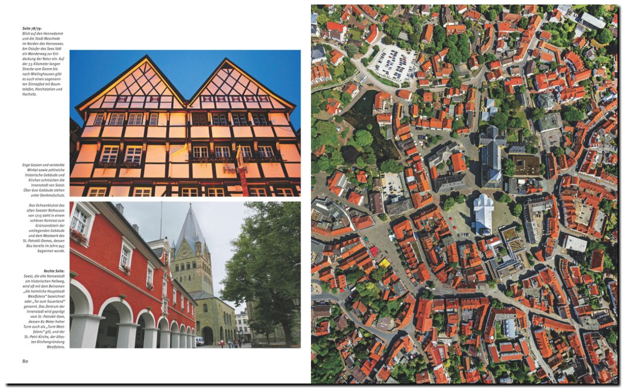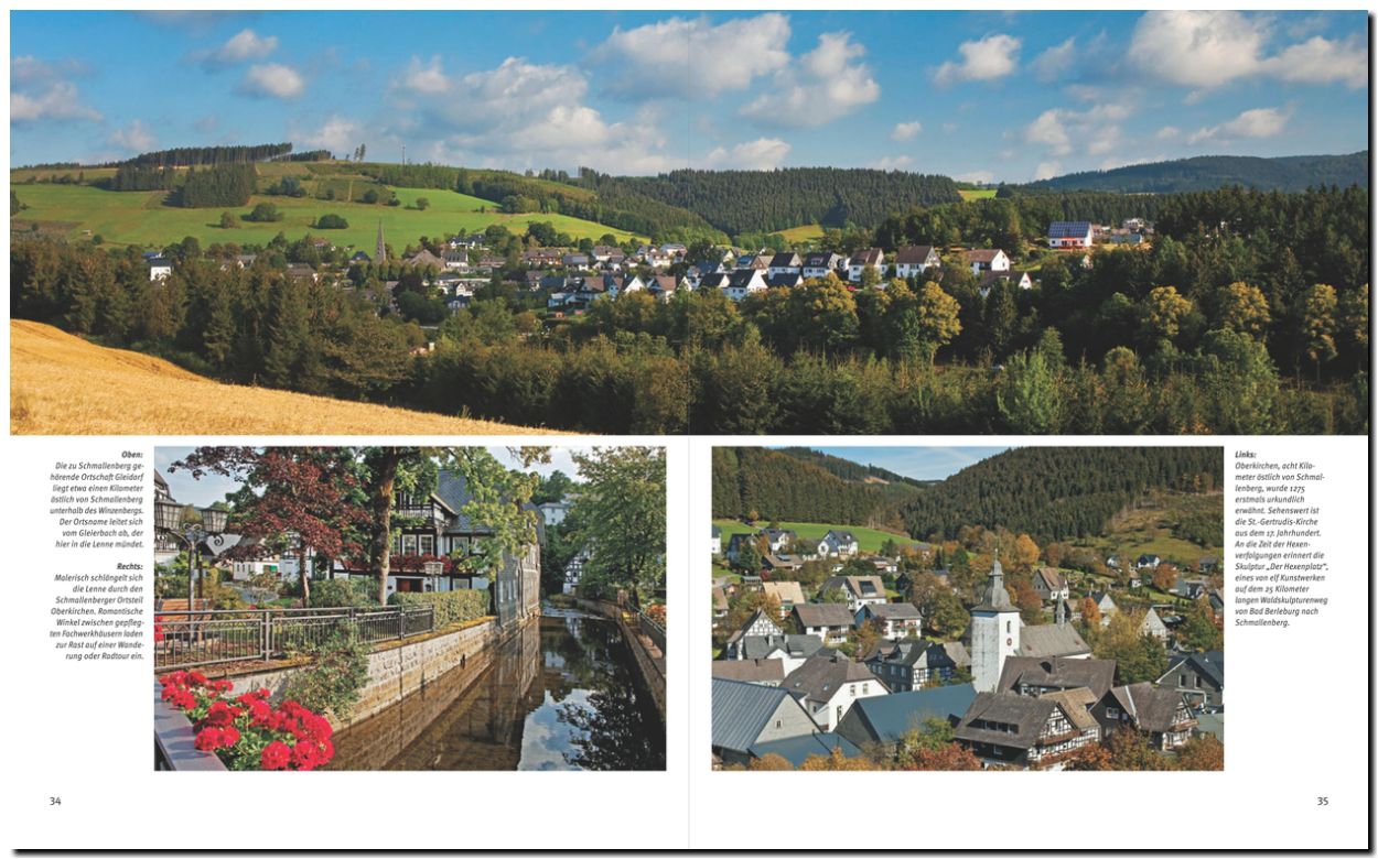 Das sogenannte „Land der tausend Berge“, die Region zwischen den Hellwegbörden südlich von Soest und dem Rothaargebirge, zwischen Ruhr und Möhne im Norden bis zum Siegerland im Süden lockt mit abwechslungsreichen und waldreichen Landschaften, mit Talsperren und Tropfsteinhöhlen. Zahlreiche Zeugnisse einer frühen Industriekultur und Technikgeschichte geben Einblick in das Leben und Arbeiten vergangener Zeiten, als Erz-Bergbau und Eisenverarbeitung die Gegend prägten. Die hübschen Städte, die kulinarischen Besonderheiten, die Bier- und Brautradition sowie die zahlreichen Erholungs- und Freizeitangebote präsentieren die Vielfalt des Sauerlandes.