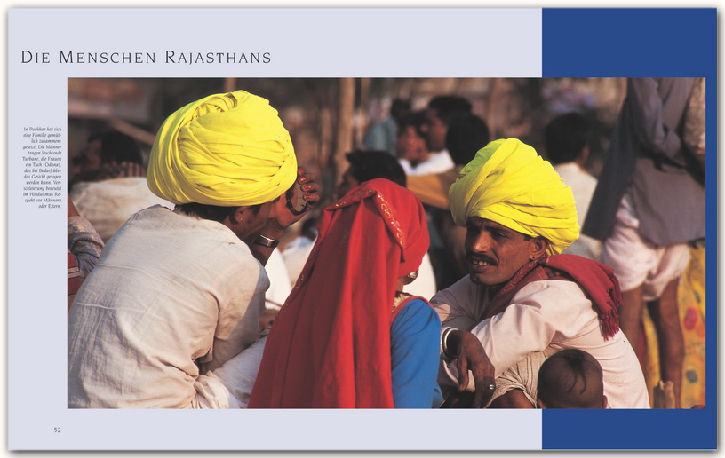 "Ein Tempel, in dem Massen von Ratten als Haustiere gehalten werden, der größte Kamelmarkt Indiens, das Architekturwunder Taj Mahal, eine Stadt in Rosa, eine andere in Blau, Feuerschlucker, Schlangenbeschwörer: Fad wird es nicht für Rajasthan-Touristen. Ein erstklassiger Bildband als Einstiegsdroge."