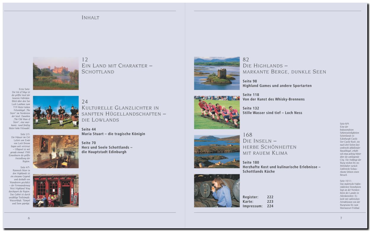 Über 310 Bilder zeigen Schottland in seiner faszinierenden landschaftlichen Schönheit, mit seinen mittelalterlichen Burgen und Klöstern, aber auch das moderne Großstadtleben mit seiner lebendigen Pub-Kultur.