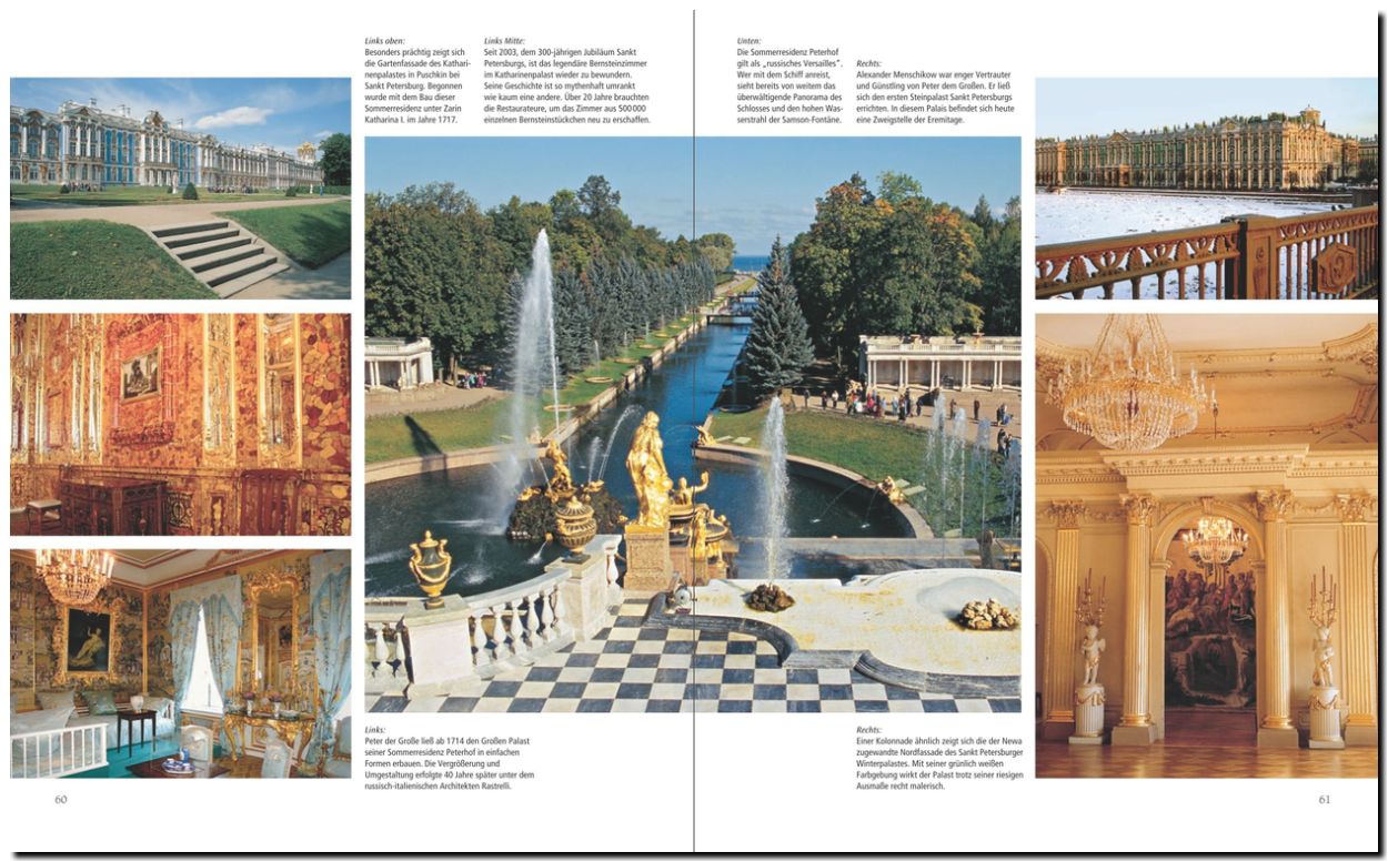 Über 310 Bilder zeigen Russland in all seinen Facetten. Specials berichten unter anderem über die Transsibirische Eisenbahn, Kunst und Kunsthandwerk, russische Literatur und die "russische Seele".