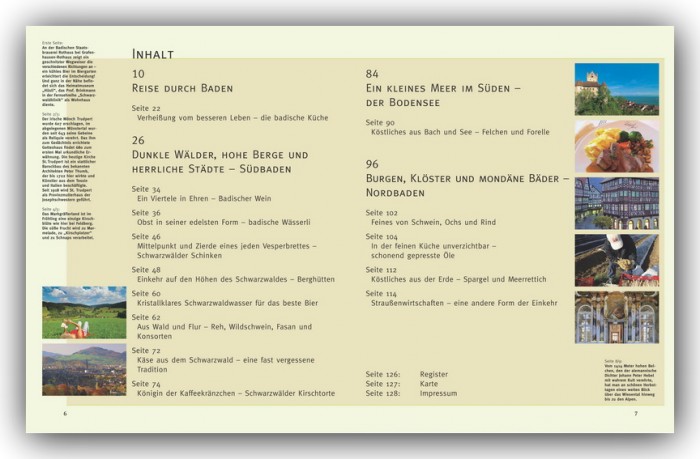 Bunte Märkte und fröhliche Feste in alten Fachwerkstädten, elegante Kurorte, wie Baden-Baden oder Badenweiler, und romantische Städte wie Heidelberg, Freudenstadt und Freiburg machen Baden zu einem beliebten Reiseziel mit zahllosen Freizeitmöglichkeiten. Doch Baden ist auch ein Reiseland für Genießer: Über Baden funkeln unbestritten die meisten Gourmetsterne Deutschlands, mehrere Restaurants spielen in der kulinarisch höchsten Liga und finden sich in allen Gourmetführern ausgezeichnet. Den Reiz macht die Ursprünglichkeit der badischen Küche aus: Zunächst eine Küche der armen Leute, wurde schon immer gekocht, was in dem Landstrich angebaut wurde - und die hervorragenden klimatischen Bedingungen lassen in Deutschlands Südwesten eben fast alles gedeihen.