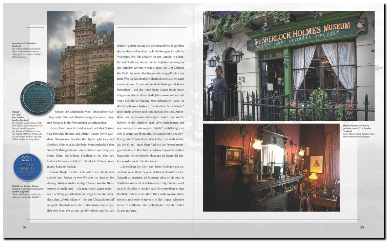 In seinem neuen Bildband begibt sich Gerald Axelrod auf eine Spurensuche. Sie beginnt in Schottland, wo Sir Arthur Conan Doyle am 22. Mai 1859 zur Welt kam und an der Universität von Edinburgh studierte. 1887 veröffentlichte er den ersten Sherlock-Holmes-Roman, der sang- und klanglos unterging. Niemand interessierte sich für den Meisterdetektiv. Dies sollte sich schlagartig ändern, als im August 1888 Jack the Ripper ganz London in Panik versetzte. Plötzlich fanden die Sherlock-Holmes-Krimis reißenden Absatz. Acht Jahre später hörte Conan Doyle eine Geisterhund-Legende und ließ seine mittlerweile für tot erklärte Figur Sherlock Holmes kurzerhand von den Toten wiederauferstehen. Er reiste ins Dartmoor, das im „Hund von Baskerville“ die heimliche Hauptrolle spielt. Der vorliegende Bildband zeigt jene geheimnisumwitterten Orte, die Conan Doyle erkundet und in seinen Roman eingebaut hat. Noch heute meiden die Einheimischen das Moor bei Nacht. Ob an den schaurigen Erzählungen vom Höllenhund doch etwas dran ist?