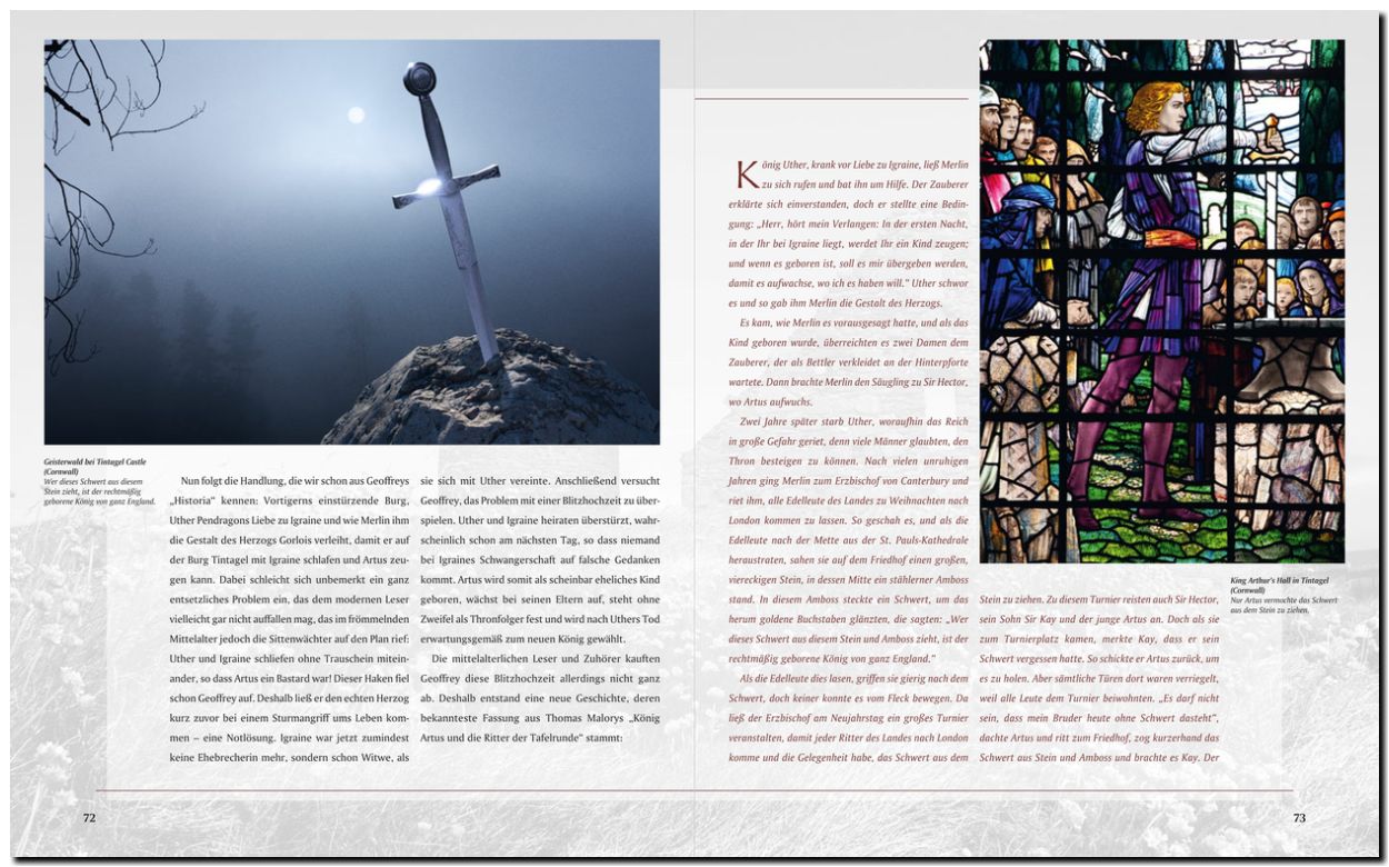 Durch mündliche Erzählungen setzte schon bald die Legendenbildung ein, die im 12. Jahrhundert ihrem Höhepunkt zusteuerte. Um Pilger anzulocken, behaupteten die Mönche von Glastonbury, sie hätten Artus’ Grab entdeckt. Auch wenn dies längst als dreiste Lüge entlarvt ist, gelang es den Mönchen dennoch, die Artus-Legende in Südengland und Cornwall anzusiedeln. Der 2. Teil zeigt deshalb die Schauplätze der Legenden, die für Artus’ anhaltende Popularität sorgen, wie die Neuverfilmung "King Arthur – Legend of the Sword" von 2017 beweist. Abschließend bleibt aber noch eine Frage zu klären: Wo liegt die Insel Avalon, um die sich so viele Mythen ranken? Dort soll die Gralsburg stehen, die das Geheimnis des heiligen Grals hütet.