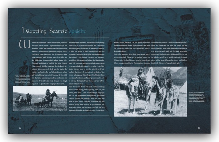 "In diesem hochwertigen Bildband präsentiert der Fotograf Christian Heeb hervorragende schwarz-weiß-Aufnahmen von Indianern und ihrem Lebensraum. Zusammen mit den Texten von Thomas Jeier ergibt sich so eine beeindruckende Text-Bild-Komposition, die alleine schon durch das Ansehen und Durchblättert Sympathie für die indianische Kultur weckt. Das Buch liefert spannende Hintergrundinformationen zum Beispiel über große Häuptlinge, frei von den Klischees, die seinerzeit in Winnetou bedient wurden.“