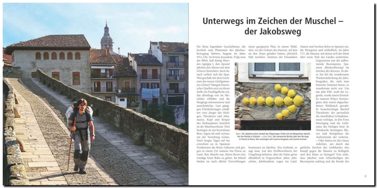 "Nach einführender Pilgerschichte "unterwegs im Zeichen der Muschel" berichten Autor und Begleiterin von den einzelnen Etappen ihrer Pilgerreise zwischen Landschaftsbegeisterung, beeindruckenden Kirchen, enormen Wanderanstrengungen, aufbauenden Herbergsaufenthalten (bauliche Mängel benannt) sowie überwältigendem Glücksgefühl am Pilgerziel. Doppelseitige Farbfotos mit Bildunterschriften (M. Schulte-Kellinghaus) dokumentieren eindrucksvoll Pilgerstrecke und -alltag. Dazu kurze Pilgerhinweise und -adressen."