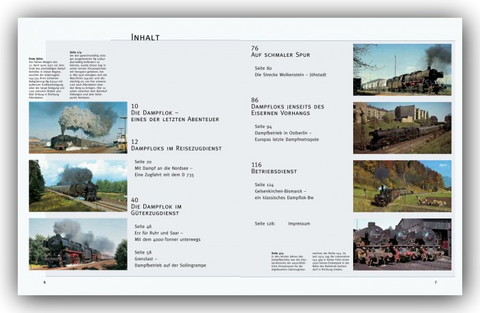 Fesselnde Reportagen erzählen vom faszinierenden wie gleichermaßen rauen Alltag des Fahrbetriebs mit Dampflokomotiven. Gleichwohl werden sowohl die Technik als auch die Dokumentation der vielen, für den Dampfbetrieb so bedeutenden Details insbesondere in den letzten Einsatzjahren kenntnisreich zur Sprache gebracht.