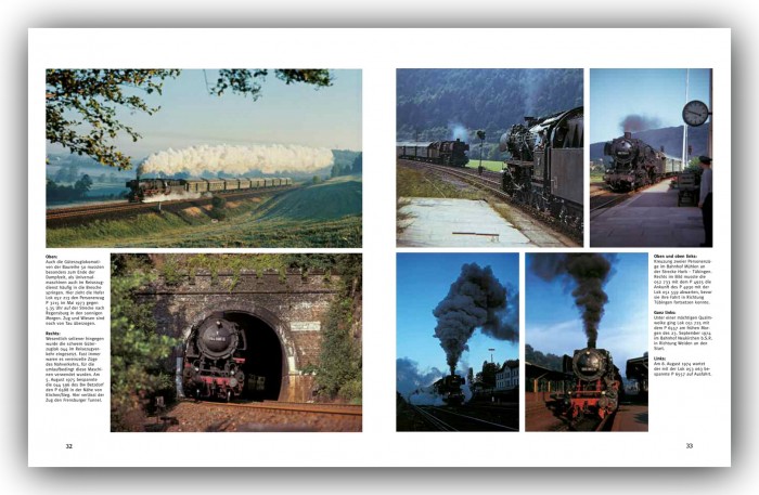 Heute ist das Zeitalter der Dampflok endgültig vorbei, von ihrer Faszination haben diese Zeugen der Technikgeschichte indes nichts eingebüßt. Blicken wir also rund 40 Jahre zurück, als bei beiden deutschen Bahnverwaltungen eine noch erstaunlich große Typenvielfalt an Dampflokomotiven tagtäglich im Einsatz beobachtet werden konnte. Zahlreiche Schnellzüge, Personenzüge, in erster Linie aber Güterzüge wurden seinerzeit von Dampfloks gezogen. Dies natürlich vor allem auf den nicht elektrifizierten Strecken, wenngleich der Dampfbetrieb immer stärker von den modernen Traktionen bedroht wurde.