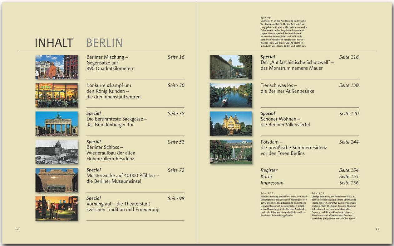 Über 250 Bilder zeigen Berlin in seiner Vielschichtigkeit und sechs Specials berichten unter anderem über die Berliner Mauer und die Museumsinsel.
