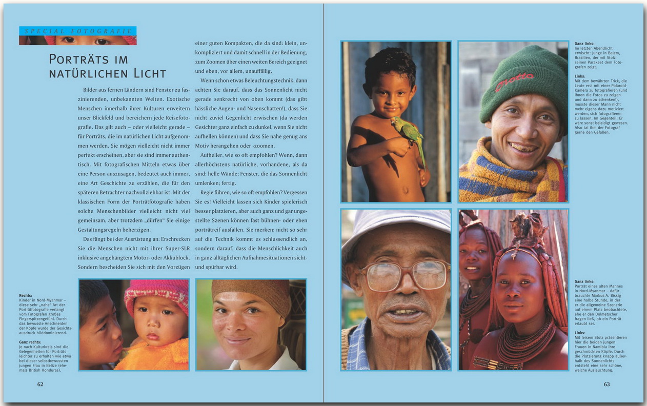 „[…] ein einzigartiger Bildband über Reisefotografie erschienen. Zwei erfahrene Reisefotografen, Christian Heeb und Markus A. Bissig, haben ihre besten Bilder beigesteuert […] ein gekonnter Mix von Bildband und Fotolehrbuch. […] selten reihen sich Spitzenbilder so lückenlos aneinander. Es ist eine Augenweide, die uns mit jeder Doppelseite aufs Neue überrascht. […] Martin Sigrist als Textautor, der von vielen Fotobüchern und Zeitschriftenartikeln her bekannt ist, würzt das Buch mit spannenden Texten und fundierter Sachkenntnis.“