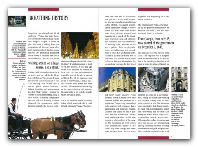 Indulgent dignitaries swaying to the beat of the waltz at Vienna´s lavish Opernball - the city on the beautiful blu Danube still effuses the charm of the "good old days". The high-tech facade of the Haas Haus and Friedensreich Hundertwasser´s dream dwellings bridge the gap between then and now.