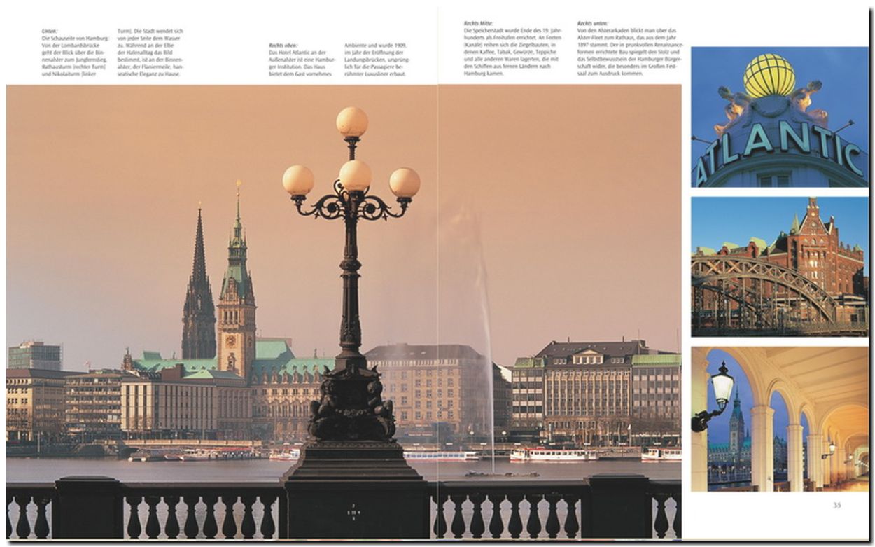 Deutschland als ein Land in der Mitte Europas erstreckt sich über 876 Kilometer von den Küsten der Nord- und Ostsee bis zu den grandiosen Alpen. Eine Reise von Nord nach Süd führt durch die unterschiedlichsten Natur- und Kulturlandschaften. Von dem einzigartigen Lebensraum des Wattenmeers und den beliebten Inseln der Nord- und Ostsee wie Sylt und Rügen, über das Norddeutsche Tiefland und die Mittelgebirgsschwelle, die von der Eifel bis zum Elbsandsteingebirge reicht, bis zu dem höchsten Punkt Deutschlands, dem Gipfel der Zugspitze, werden die landschaftlichen Schönheiten porträtiert. Von der reichen und wechselvollen Vergangenheit Deutschlands zeugen seine bedeutenden Kirchen, Burgen und Schlösser, von den romanischen Kaiserdomen bis zu den Märchenschlössern Ludwigs des II. Mittelalterliche Städte wie Rothenburg ob der Tauber, Lübeck und Wernigerode sowie Metropolen mit moderner Architektur, allen voran die "neue" Hauptstadt Berlin, bieten zahlreiche kultur- und kunsthistorische Höhepunkte.